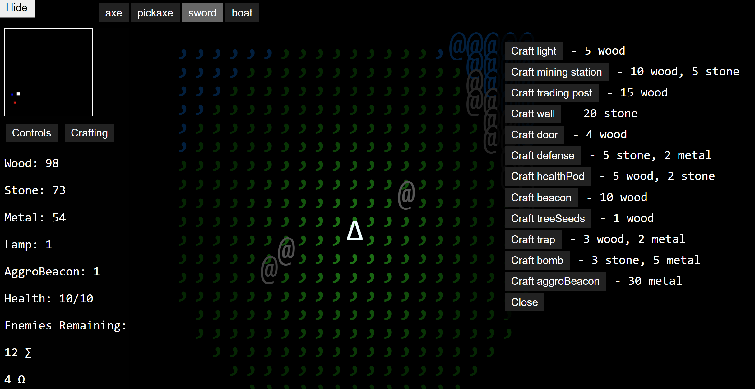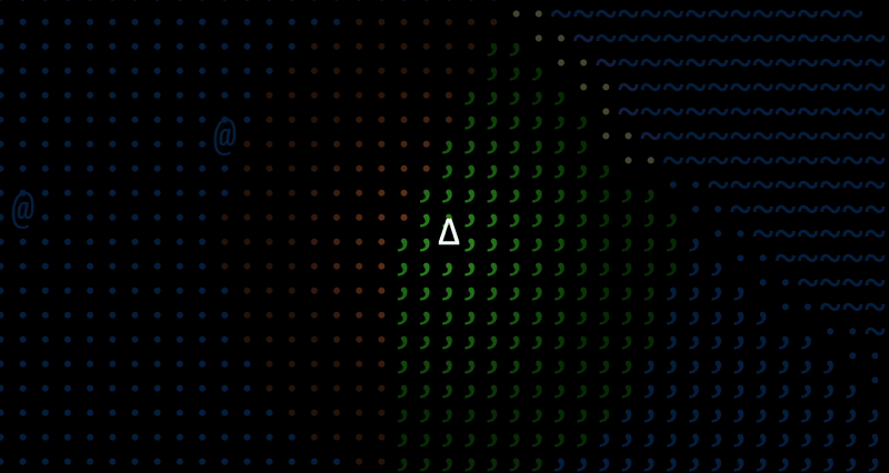 Textlands is a web-based exploration and survival game set in a procedurally generated ASCII world.